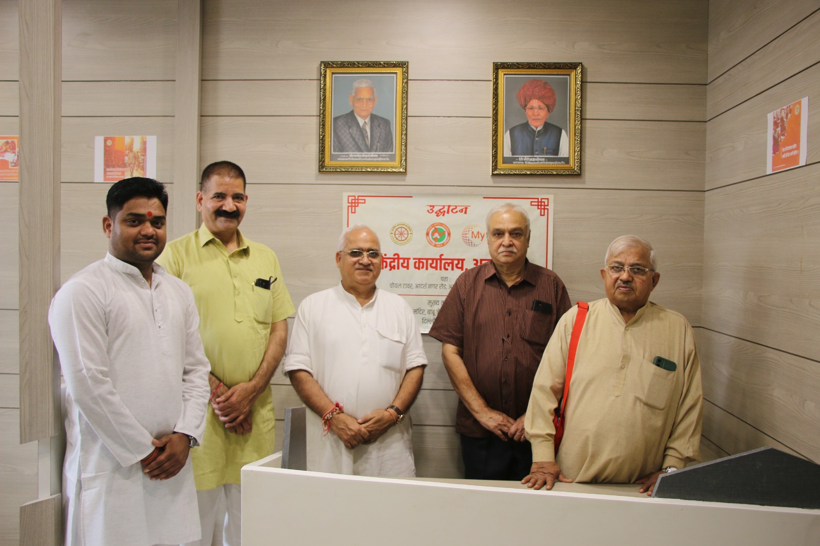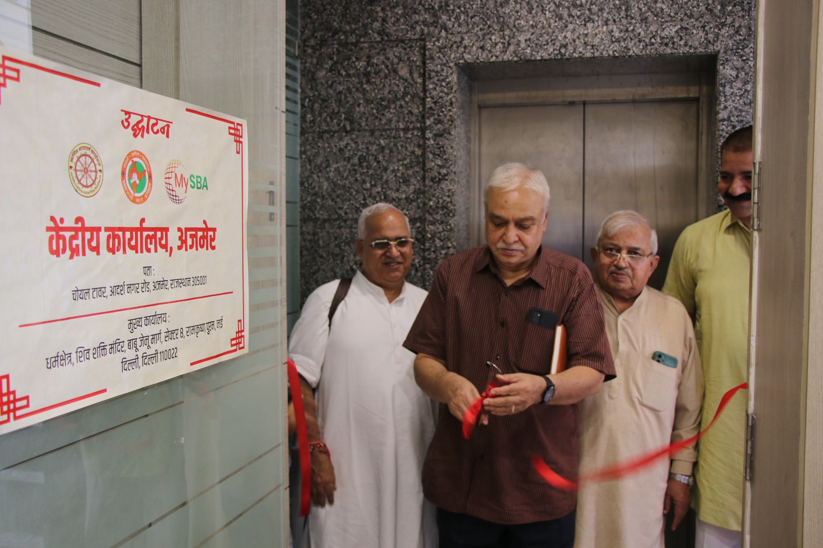 अजमेर। स्वावलम्बी भारत अभियान एवं स्वदेशी जागरण मंच के तत्वावधान में अजमेर में आयोजित बैठक ऐतिहासिक साबित हुई। इस अवसर पर MySBA (Swavalambi Bharat Abhiyan) के केंद्रीय कार्यालय का उद्घाटन भी किया गया। कार्यक्रम में मुख्य अतिथि के रूप में माननीय कश्मीरी लाल जी (अखिल भारतीय संगठन, स्वदेशी जागरण मंच), माननीय सतीश कुमार जी (अखिल भारतीय सह-संयोजक, स्वदेशी जागरण मंच) एवं माननीय आर. सुंदरम जी (अखिल भारतीय संयोजक, स्वदेशी जागरण मंच) उपस्थित रहे। अतिथियों का स्वागत श्री राधेश्याम चोयल (डायरेक्टर – स्वर्णिम भारतवर्ष फाउंडेशन एवं अखिल भारतीय आईटी प्रमुख – MySBA) के साथ श्री जे.के. शर्मा, श्रीमती रंजीता तंवर एवं श्री राजेश बंसल ने किया।