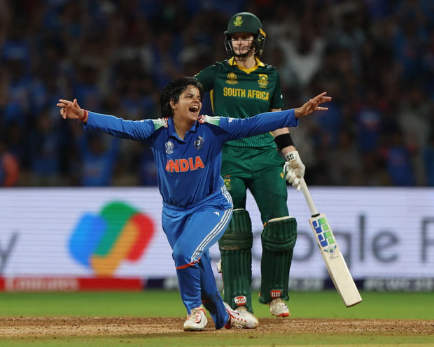 जवाब में दक्षिण अफ्रीका की टीम 246 रन पर ऑल आउट हो गई। मैच का निर्णायक क्षण तब आया जब दीप्ति शर्मा ने एनेरी डर्कसेन को शानदार यॉर्कर से बोल्ड किया और फिर लौरा वूलवार्ट, जो टूर्नामेंट की सर्वाधिक रन बनाने वाली खिलाड़ी रहीं (571 रन), को आउट कर भारत की जीत पक्की कर दी। मैदान में दर्शकों का उत्साह चरम पर था — हर रन, हर विकेट के साथ भारत का जश्न गूंज उठा।