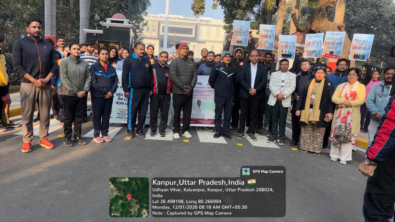 पूज्य स्वामी विवेकानंद जी की जयंती के पावन अवसर पर छत्रपति शाहू जी महाराज विश्वविद्यालय, कानपुर परिसर में ‘स्वदेशी संकल्प दौड़’ का भव्य एवं प्रेरणादायक आयोजन किया गया। इस अवसर पर युवाओं में देशभक्ति, स्वदेशी भावना एवं आत्मनिर्भर भारत के विचार को सशक्त करने के उद्देश्य से 3 किलोमीटर लंबी दौड़ आयोजित की गई, जिसमें 500 से अधिक धावकों ने उत्साह और जोश के साथ भाग लिया। कार्यक्रम में कानपुर प्रांत के सह प्रांत संयोजक केशव बाजपेई जी, सह प्रांत समन्वयक उपेंद्र तिवारी जी, प्रांत युवा प्रमुख करण सिंह जी के साथ विश्वविद्यालय के कुल सचिव डॉ. राकेश मिश्रा जी एवं चीफ प्रॉक्टर डॉ. समीर मिश्रा जी की गरिमामयी उपस्थिति रही। सभी अतिथियों ने स्वामी विवेकानंद जी के विचारों पर प्रकाश डालते हुए युवाओं को स्वदेशी अपनाने, आत्मनिर्भर बनने और राष्ट्रनिर्माण में सक्रिय भूमिका निभाने के लिए प्रेरित किया। धावकों ने पूरे अनुशासन और एकजुटता के साथ दौड़ पूरी कर स्वदेशी के संदेश को जन-जन तक पहुँचाया। कार्यक्रम के माध्यम से युवाओं में शारीरिक सशक्तता के साथ-साथ मानसिक और वैचारिक जागरूकता का संचार हुआ, जिससे स्वामी विवेकानंद जी के आदर्शों को व्यवहार में उतारने का संकल्प और अधिक मजबूत हुआ।