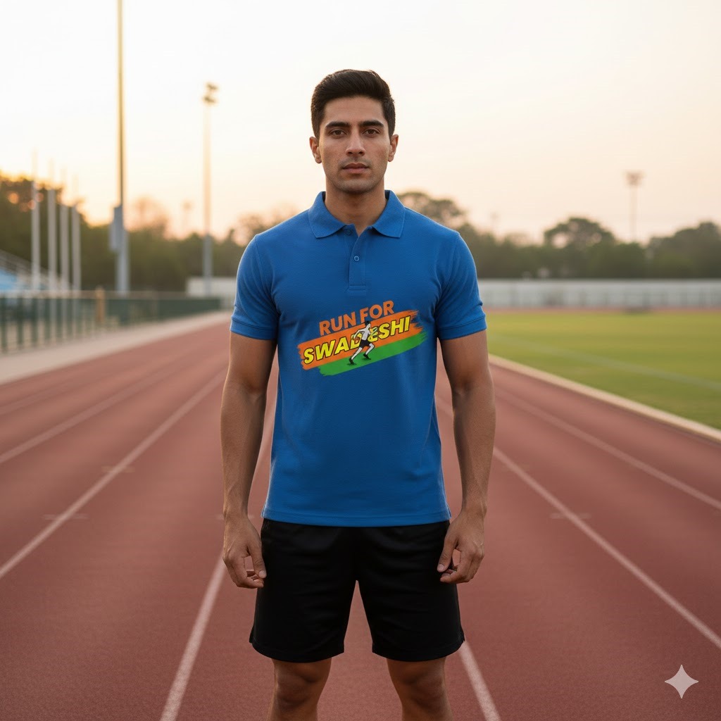 Run For Swadeshi Blue Polo Tshirt