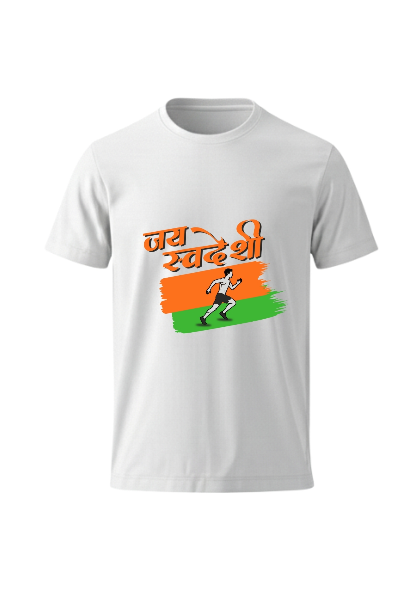 Run For Swadeshi White Round Neck Tshirt