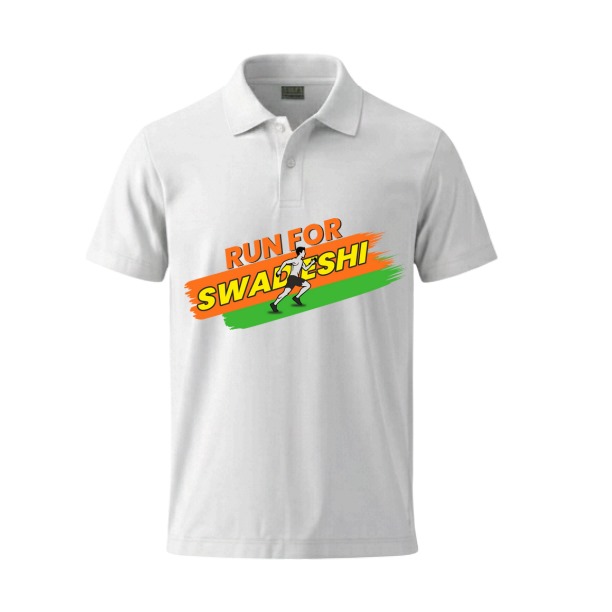 Run For Swadeshi White Polo Tshirt