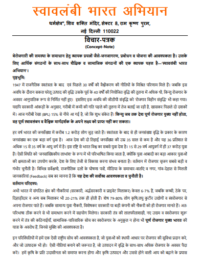 Concept note of Swavlambi Bharat Abhiyan Hindi