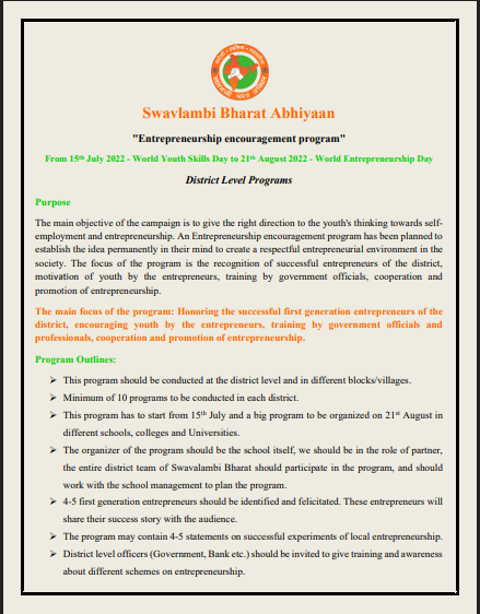 Entrepreneurship Program - District Level Program